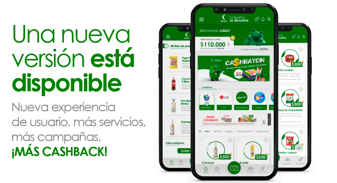 TuCash es una aplicación móvil que permite recibir cashback (devolución de dinero real) subiendo tus facturas de compra de productos en supermercados.