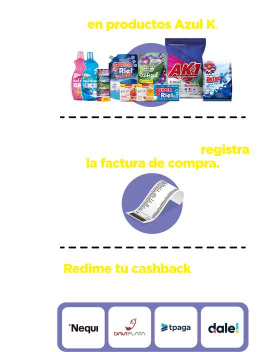 Durante la vigencia de la Actividad Promocional, por cada treinta y cinco mil pesos colombianos (COP $35.000) en compras de productos participantes realizadas en los supermercados especificados en el Apéndice 1 de estos términos y condiciones, el consumidor podrá recibir una recompensa de cinco mil pesos colombianos (COP $5.000) en cashback, pudiendo acumular facturas hasta completar el monto mínimo exigido.