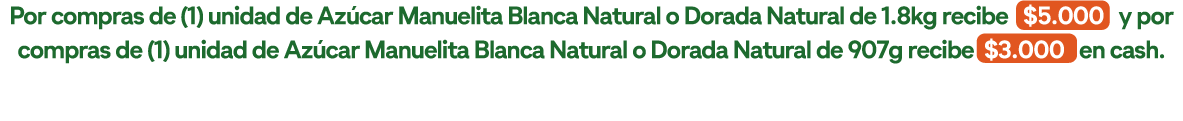 Azúcar Manuelita de 907 Gr (referencias participantes), es de COP $18.000, sin importar el valor total de la factura registrada.