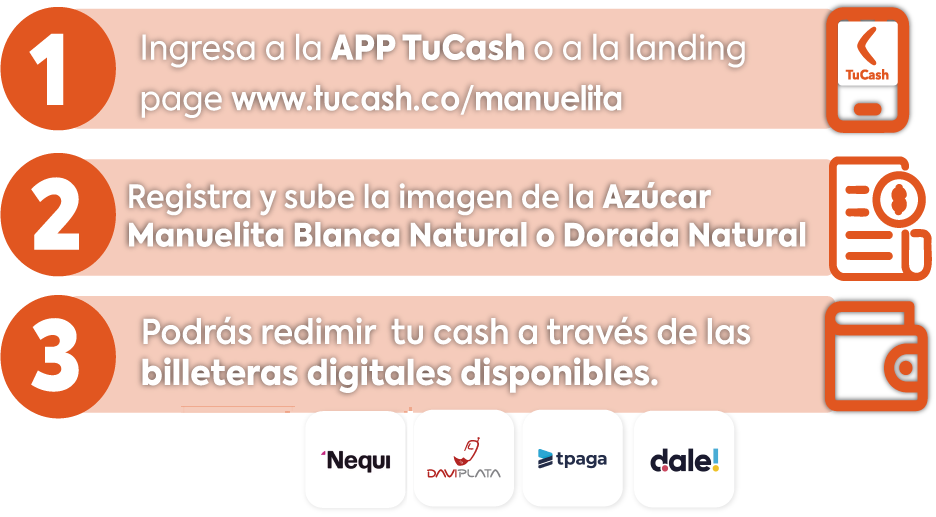 La Actividad promocional va dirigida a los consumidores (personas naturales) mayores de edad que realicen compras de las referencias participantes de la marca Manuelita®️ en las Grandes Cadenas, Supermercados Independientes, Supermercados Regionales, Minimercados, Cash and Carry, Hard Discount del territorio nacional que expidan factura conforme a las normas colombianas. Los usuarios podrán obtener una recompensa en cashback: